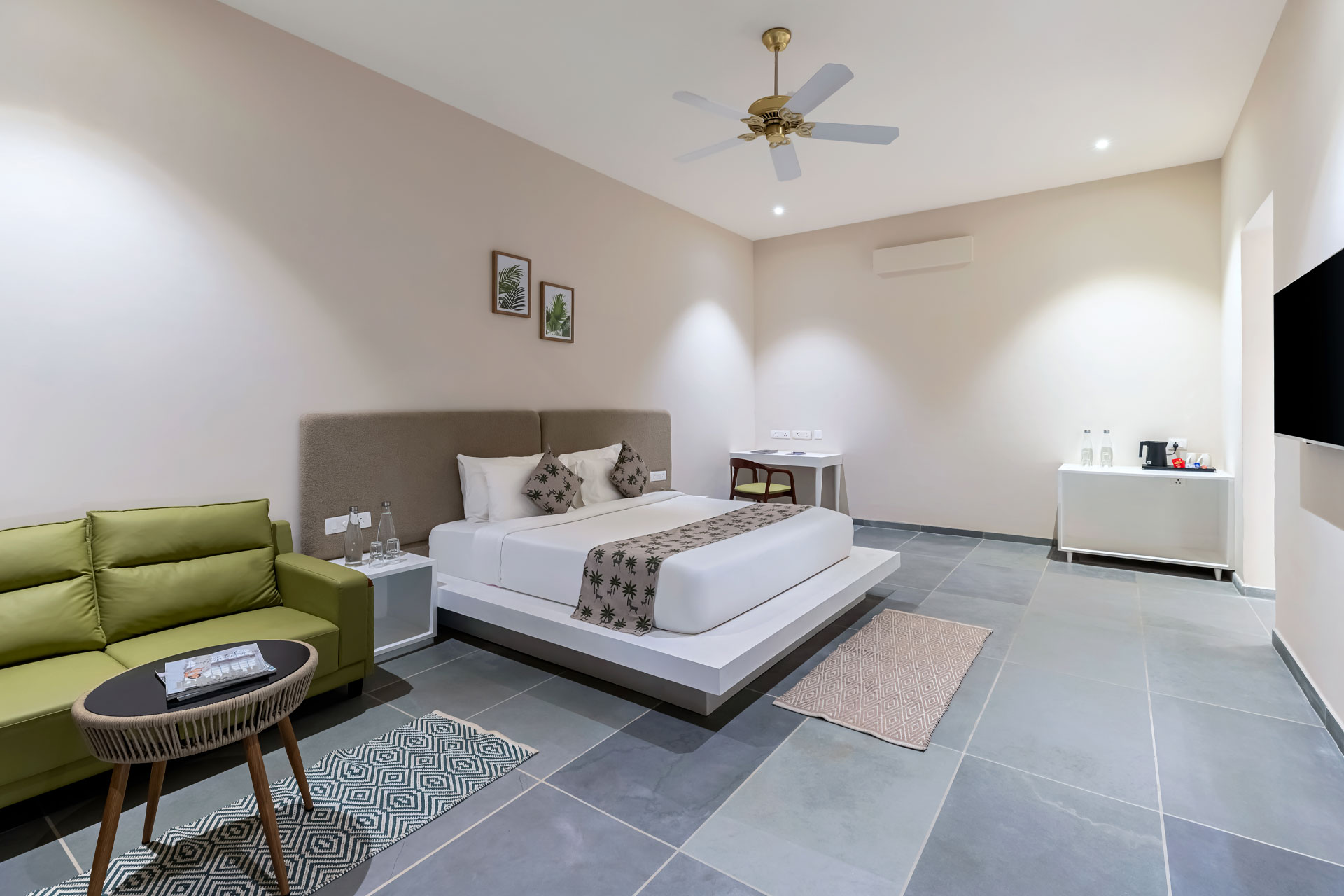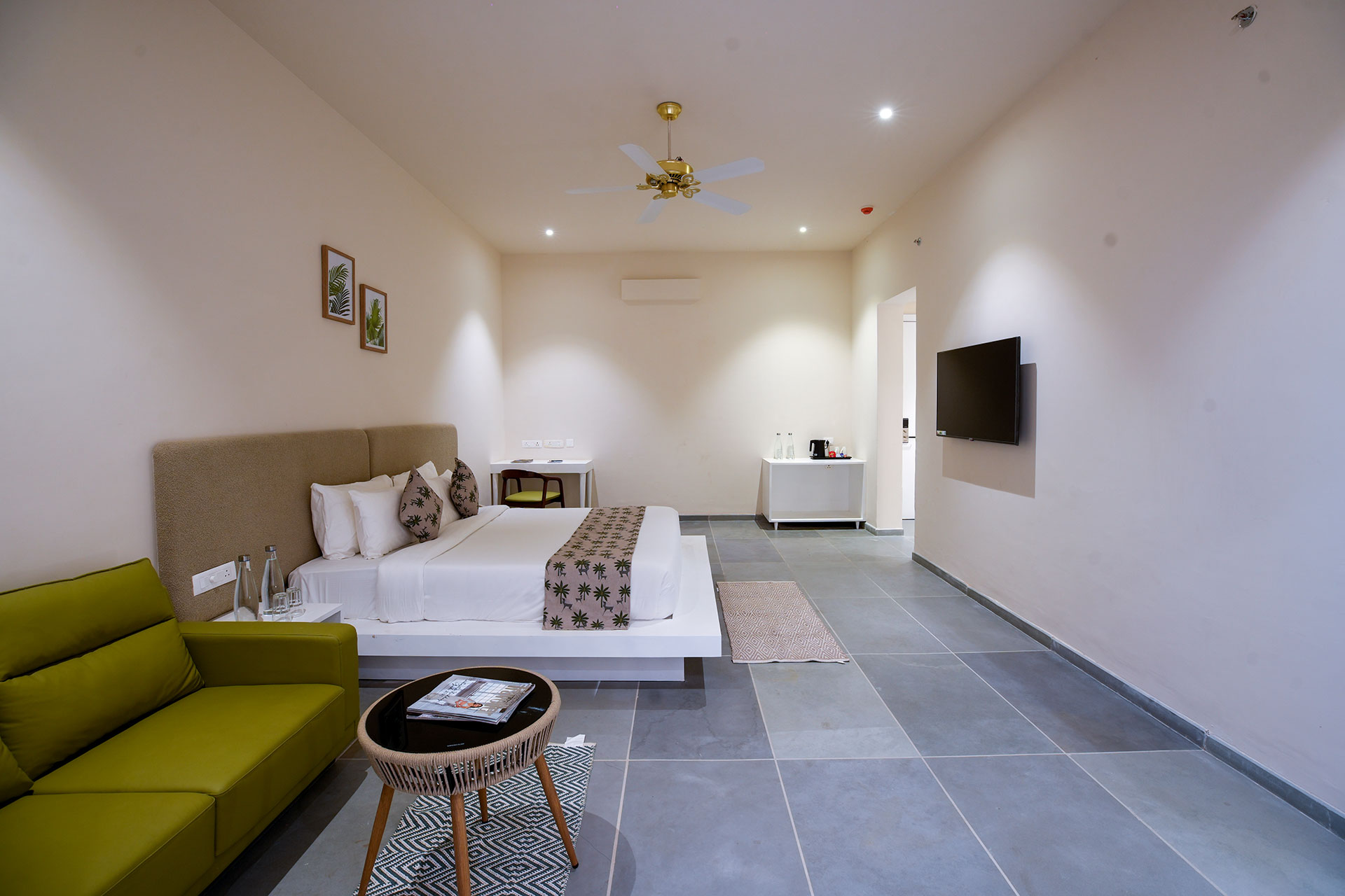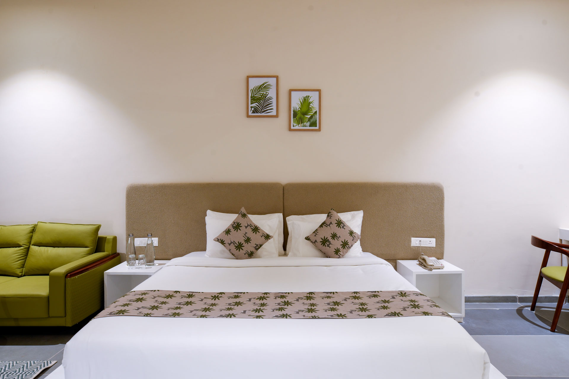 The Executive Room is thoughtfully designed for travellers seeking a comfortable and functional stay without compromising on aesthetics. With 500 sq ft of space, elegant décor, premium amenities and a peaceful ambience, it is ideal for short stays, business travel and quick getaways.